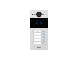 Die Akuvox 40080091 R20BX5 Surface ist eine kompakte Video-Gegensprechanlage mit fünf Tasten und einer 2-MP-Kamera. Sie unterstützt RFID-Technologie (125 kHz und 13,56 MHz) und bietet sowohl PoE (Power-over-Ethernet) als auch 12-V-Gleichstromversorgung. Dank der IP65-Zertifizierung ist die Gegensprechanlage wasser- und staubdicht und gewährleistet so zuverlässigen Betrieb in verschiedenen Umgebungen.