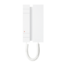 Video-Pförtnerzentrale in Tischversion für Simplebus 1-System mit Mikroschalter-Tastatur und Display für den Videoruf. Ergonomischer Hörer mit unsichtbaren Magneteinsätzen für ein einfaches Auflegen auf die Basisstation. Zeigt den Code und den Namen des a