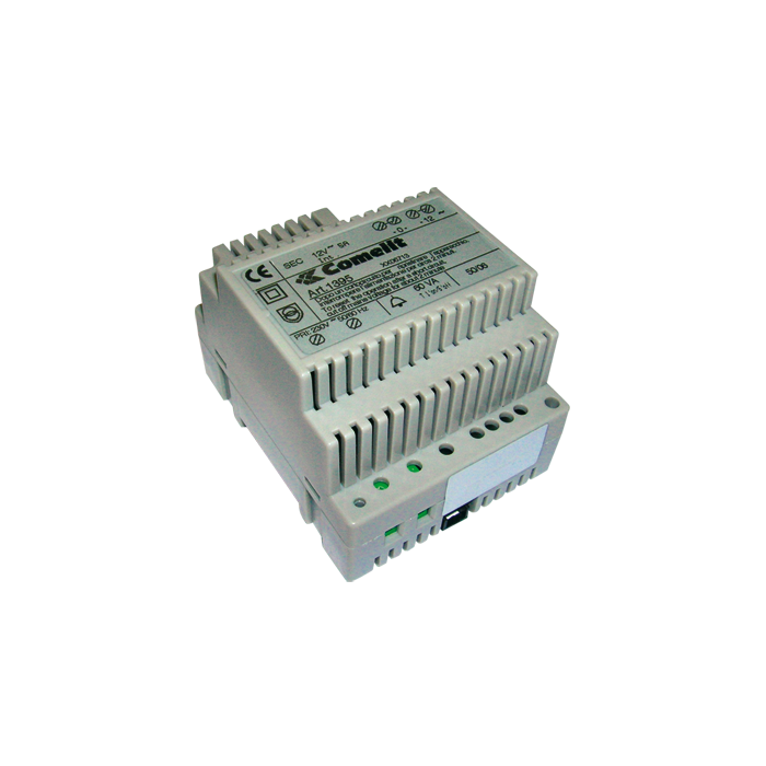 Transformator, 230 V Primärspannung. Sekundärspannung 0?12 V AC/60 VA für den intermittierenden Betrieb. Der Transformator ist mit einem internen PTC-Schutz ausgestattet. Abmessungen: 71,7 x 90 x 62 mm (4 DIN-Module).