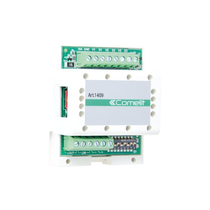 Kameramodul das die Modulation und Weiterleitung des Videosignals von bis zu 3 Farb- Videokameras ermöglicht. Die abwechselnde Auswahl der Videokameras erfolgt durch die Steuertaste der Innenstation. Es besteht die Möglichkeit zur Ansteuerung von bis zu drei separaten, analogen Videokameras, welche mit eigener Spannungsversorgung ausgestattet sind. Zur Verwendung in SimpleBus TOP, 2-Draht-Systeme und QuadraKit Systemen (SB2). Versorgung 12V Wechselspannung (Art. 1200) oder 20V Gleichspannung. Abmessungen: