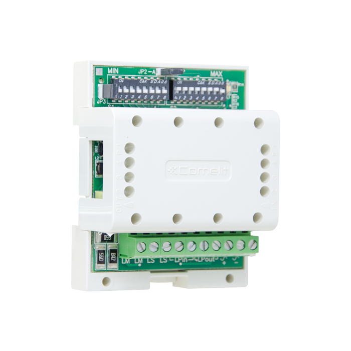 Türumschaltgerät welches die Einrichtung von SimpleBus Systemen mit >240 Teilnehmern ermöglicht. Verwendung auch in Anlagen für mehrere Einfamilienhäuser mit zentralisierter Türsteuerung und Pförtnerzentrale. Die Signalweiche ermöglicht die Kaskadenverteilung der Busleitung alternativ zur Sternverteilung und optimiert die Verdrahtungstopologie des Anlagenteils vom Videomischer Art. 4888C. Mit Selbsteinspeisung des Eingangs LS|LS für die Verwaltung der Steigleitung ohne spezielle Zusatz-Türstation. Versorgungsspannung 12V AC (verwendbar Art. 1200) oder 20V DC. Abmessungen: 60x85x35mm (4 DIN-Module).