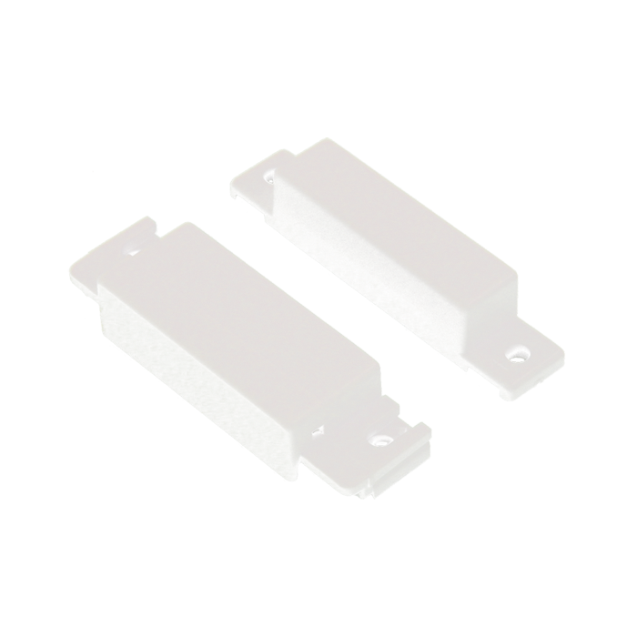 Aufputz-Magnetkontakt, Kunststoffgehäuse, Klemmanschlüsse, weiß. Maße: (B x H x T) 33x63x12mm.
