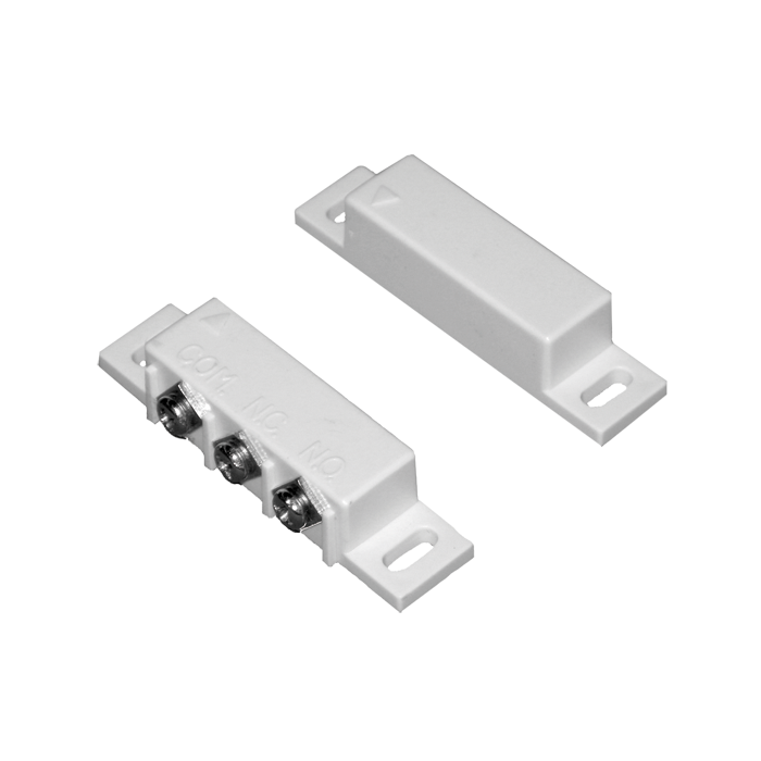 Aufputz-Magnetkontakt, Kunststoffgehäuse, Klemmenanschlüsse, C-NC-NO. Maße: (B x H x T) 33x63x12mm.