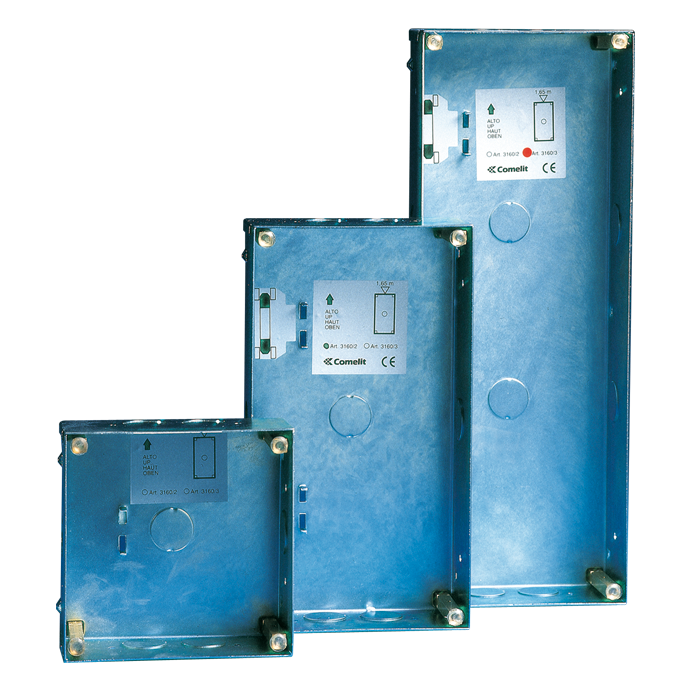 Unterputzgehäuse für Vandalcom Module, 3 Module. Abmessungen: 130x354x58mm.