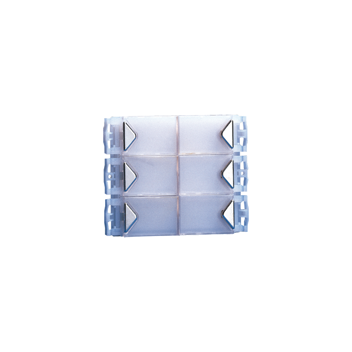 Klingelmodul aus verchromter Aluminiumlegierung. Blaue LED beleuchtet die abnehmbaren Namensschilder. Komplett mit Klemmleiste und 4-poligem Anschlusskabel. Klingelnummer: 6. Maße: 112x89,5x40 mm.