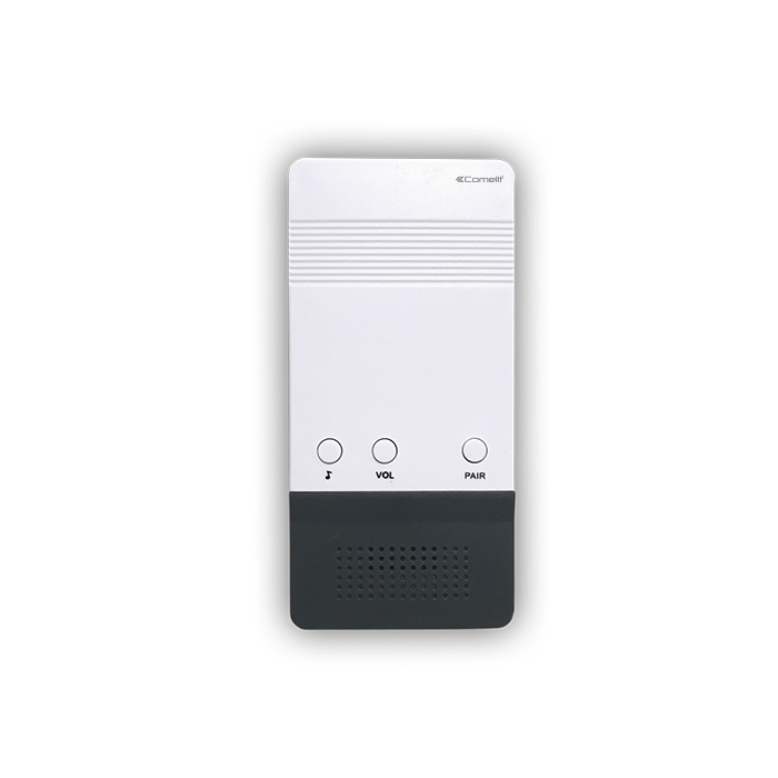 Zusätzlicher Funkgong Visto mit einer Arbeitsfrequenz von 433MHz. Lautstärke einstellbar und verschiedene Melodien auswählbar. Spannungsversorgung mit 2 Batterien Typ AA 1,5V (nicht im Lieferumfang). Aufputzmontage. Farbe weiss-silber.