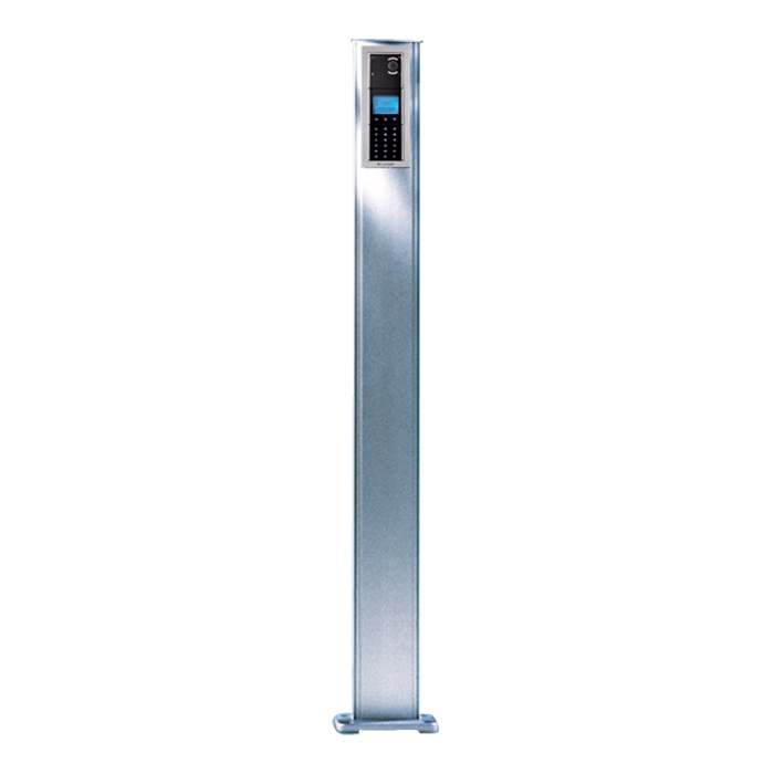 Säule iKall und Ultra aus Aluminium in stahlfarbener Lackierung. Inkl. Regendach sowie Fussplatte für die Bodenbefestigung. 3 Module. Abmessungen: 180x1700x75mm.
