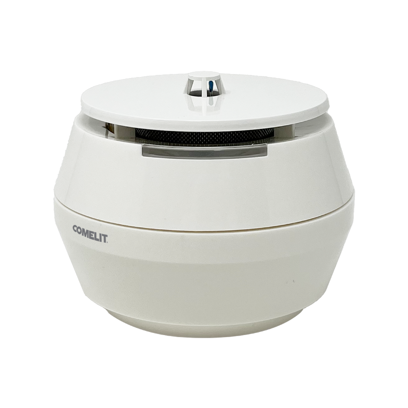 Adressierter Funk-Multisensormelder, konzipiert für den Einsatz mit Comelit Funk-Erweiterungsmodulen. Der Melder ist mit einer 360° sichtbaren Anzeige-LED und einem integrierten Summer zur zusätzlichen Signalisierung im Falle eines Feueralarms (kann überbrückt werden) und zur Lokalisierung innerhalb des Systems ausgestattet. Um unbefugte Demontage oder Entfernung zu verhindern, ist der Melder an seinem Sockel verriegelbar. Er ist mit einem Sabotageschutz zur Signalisierung beim Öffnen ausgestattet. Der 45RML100 kombiniert die Detektionsart eines Thermomelders mit der eines optischen Rauchmelders und eignet sich daher besonders für Anwendungen, die höchste Zuverlässigkeit bei der Brandfrüherkennung erfordern. Der Melder meldet Alarm, sobald der Rauch- oder Temperaturschwellenwert überschritten wird. Die Registrierung des Geräts ist schnell und einfach. Die Kommunikationsdistanz zwischen Melder und Erweiterung (im freien Feld) beträgt über 1000 Meter. Bidirektionale Funkkommunikation mit eigenem Kommunikationsprotokoll. Batterien (3 x CR123A) mit einer maximalen Lebensdauer von ca. 10 Jahren (je nach Nutzung und Einstellungen). Temperaturbereich -10 °C / +55 °C. Abmessungen (inkl. Sockel): Ø108x82mm. Material: ABS. Schutzart: IP30. Verfügbare Temperaturklassen: A1/R und 4 verschiedene Empfindlichkeitsstufen, programmierbar über das Menü der Brandmelderzentrale. Zertifiziert nach EN 54-5, EN 54-7 und EN 54-25.