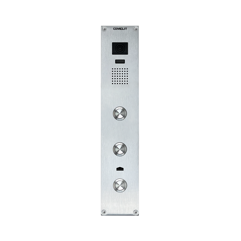 Adam Monoblock-Unterputz-Audio-/Video-Türsprechstelle mit 3 Tastern. Digitales 2-Draht-Simplebus 2-System. Die Frontplatte besteht aus eloxiertem Aluminium, ist witterungsbeständig und vandalensicher (Schutzklasse IK08). Weitwinkelkamera. Die Tastern sind vorprogrammiert, um die Video-Türsprechanlagen mit den Rufcodes 1, 2 und 3 anzurufen. Die Gesamtbreite beträgt nur 60 mm, eine sehr kompakte Größe, die neben der traditionellen Wandmontage auch die direkte Montage der Türsprechstelle am Türrahmen ermöglicht. Ideal auch für Renovierungen. Namensschilder Art. AD9201 und individuell gestaltbare Hinweisschilder Art. AD9202 können ergänzt werden. Abmessungen (B x H x T): 60 x 300 x 37 mm.