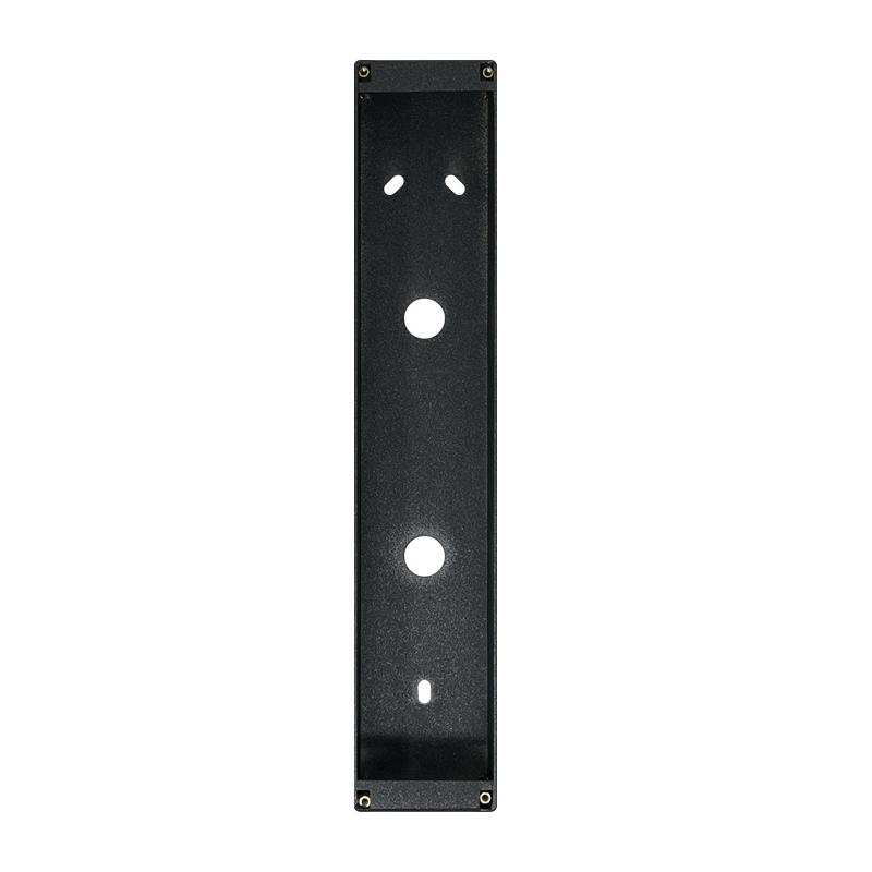 Aufputzgehäuse für die Adam Türstation mit 4 Tastern. Aus metallic-lackiertem Aluminium. Es ragt nur 44 mm aus der Wand heraus. Maße (B x H x T): 59 x 344 x 44 mm.