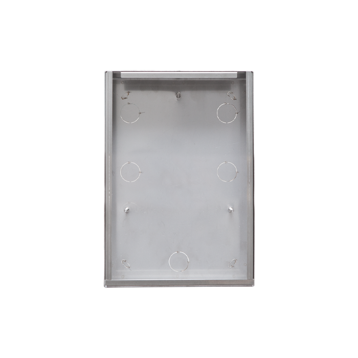 Aufputzgehäuse OHNE REGENSCHUTZHÜLLE zur Montage auf Gipskartonplatten, für Frontplatten der Schalterart. IX0105, IX0106, IX0107 und IX0108 mit 5-6-7-8 Drucktasten.