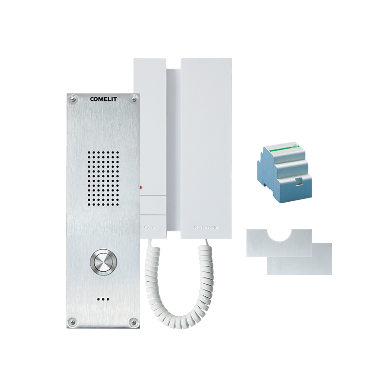 Einzel-Audio-Kit für ein herkömmliches 5-adriges System. Ermöglicht den Anschluss einer parallel installierten Türsprechanlage pro Benutzer. Geeignet für Wohn-, Geschäfts- oder Büroinstallationen. Das Kit wird betriebsbereit geliefert. Es besteht aus einer Adam Unterputz-Türsprechanlage (Art. AD5001) mit Namensschild (Art. AD9201) und Hinweisschild (Art. AD9202), einer Mini-Türsprechanlage mit Hörer (Art. 2702W) und sämtlichem Zubehör zum Anschluss des Systems.