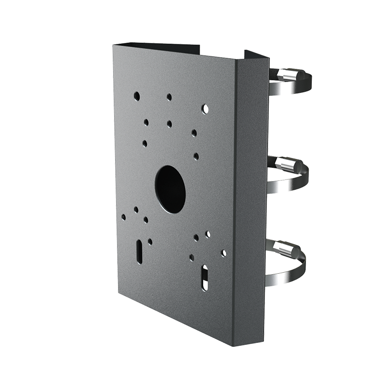 Zubehör für die Mastmontage von Next und Advance Kameras, Farbe Verkehrsgrau B, RAL 7043. Bezüglich der Modellkompatibilität siehe Schema im Downloadbereich. Pfostendurchmesser von 80 bis 140 mm