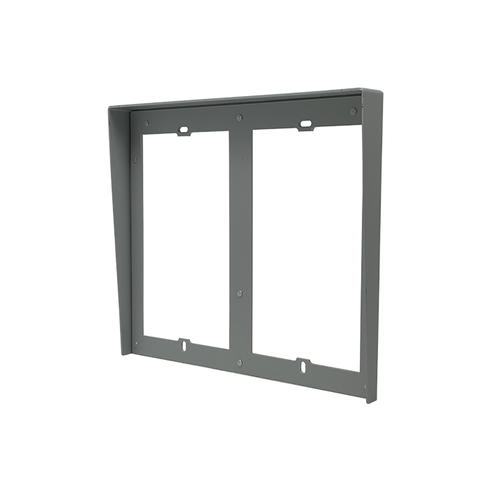 Regenschutz für 4-Modul-Unterputzrahmen (2 Wandhalter mit je 2 nebeneinander angeordneten Modulen) für die Ultra-Türstation. Aus grau eloxiertem Aluminium. Maße (B x H x T): 259 x 232 x 32 mm.