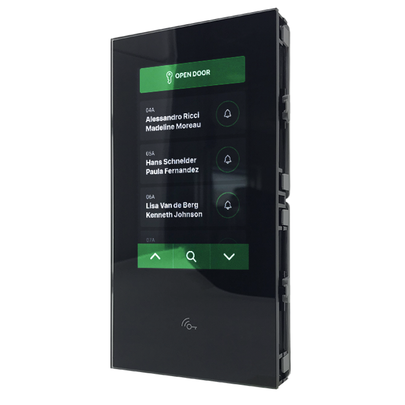Der 5-Zoll-HD-kapazitive Touchscreen mit stoßfestem Glas bietet eine intuitive grafische Benutzeroberfläche. Diese lässt sich vollständig individuell anpassen, beispielsweise mit Direktrufen zu Privathaushalten, kommerziellen Aktivitäten (einschließlich Logos), der Steuerung von Türöffnungen oder Beleuchtung sowie der Anzeige von Nachrichten an die Bewohner. Benutzer können zwischen einem weißen und einem schwarzen Design wählen.