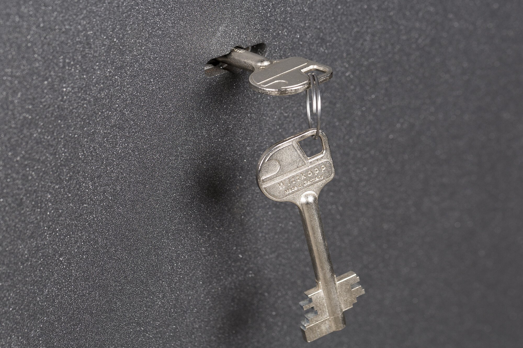 Dieser Tresor bietet neben dem Einbruchschutz auch einen ersten Schutz gegen Feuer. Der Tresor ist feuerbeständig nach DIN 4102. Die K-Serie ist mit einem Doppelbart-Schlüsselschloss ausgestattet und wird für zusätzliche Sicherheit und Benutzerfreundlichkeit mit zwei Schlüsseln geliefert.