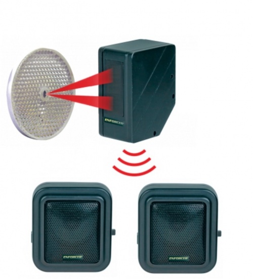 Die kabellose Türklingel Enforcer PEM7D-RF2 mit Infrarot-Lichtschranke ist eine beliebte Lösung für die Eingangssignalisierung in Geschäften und kleinen Unternehmen. Diese kabellose Lichtschranke wird an der Innenseite der Eingangstür installiert und aktiviert automatisch ein akustisches Signal, sobald der unsichtbare Infrarotstrahl von einem Besucher unterbrochen wird.