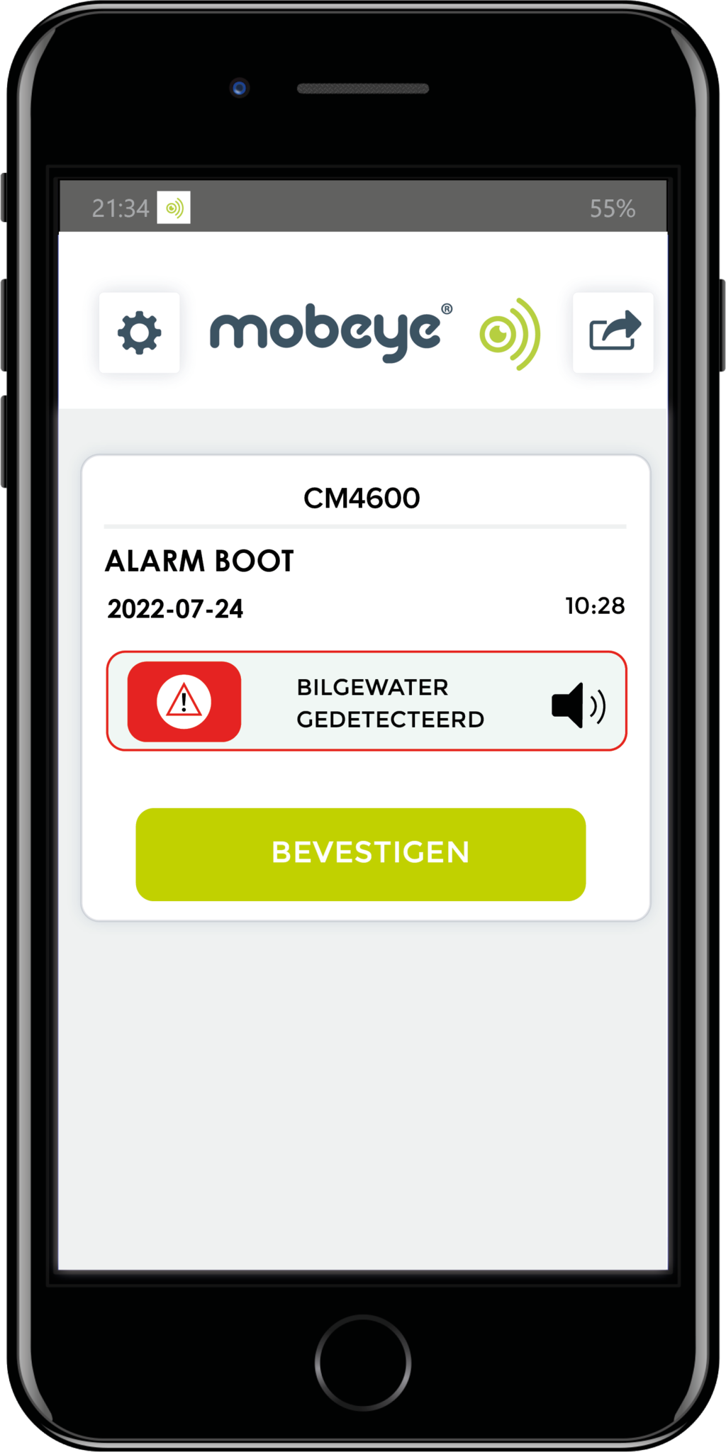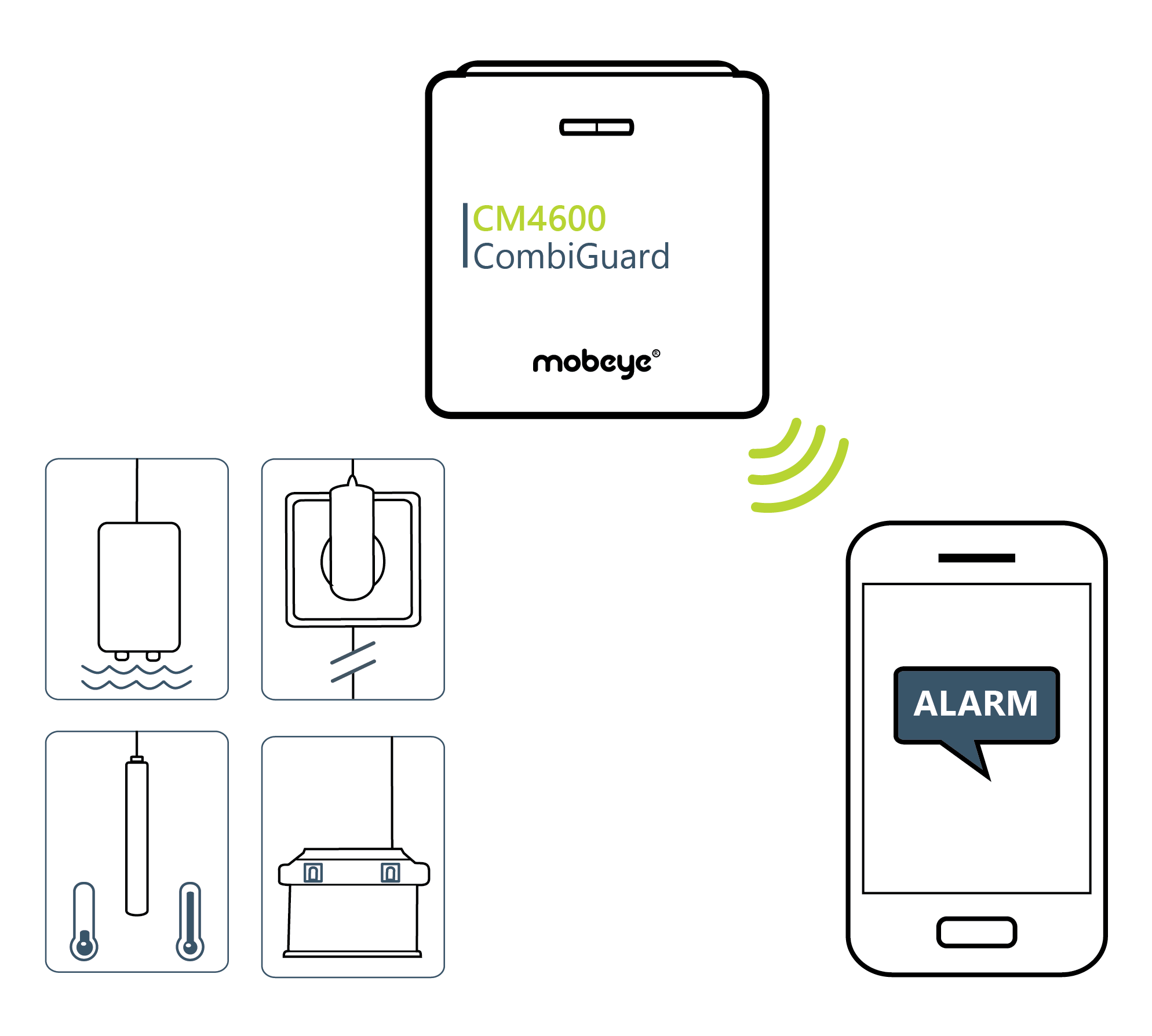 Im Falle einer Statusänderung alarmiert Mobeye CombiGuard per Push-Nachricht, Anruf, SMS und/oder E-Mail. Die Kontaktpersonen sind einstellbar, mit Auswahlmöglichkeiten für die Alarmmethode.