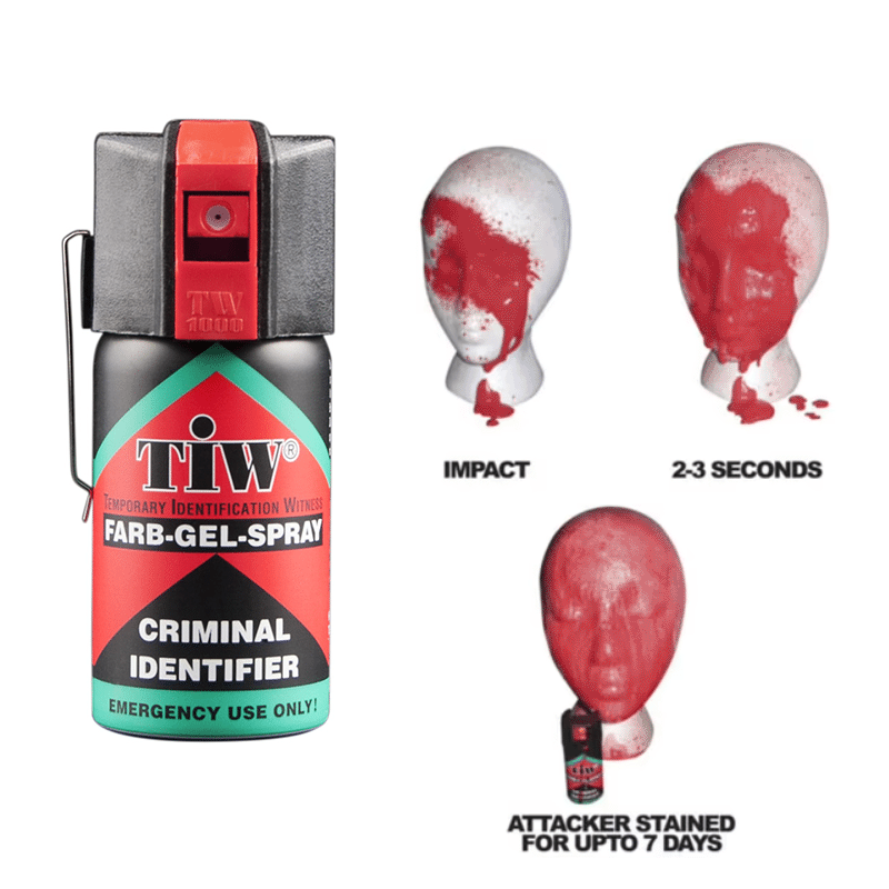 Das TW1000 FARB-GEL SPRAY ist ein leistungsstarkes Selbstverteidigungsinstrument. Das Spray enthält keine Reizstoffe, sondern setzt einen stark haftenden roten Lebensmittelfarbstoff frei, der Angreifer sofort abschreckt und für eine dauerhafte Identifizierung sorgt. Die auffällige Farbe bleibt auf Haut, Kleidung und Gegenständen sichtbar und ermöglicht so auch nach längerer Zeit eine einfache Identifizierung der Täter.