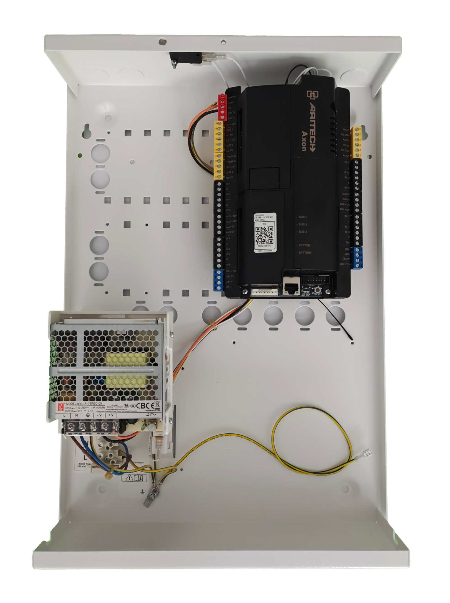 De Aritech Axon2600-MM is een flexibele en schaalbare toegangsdeurcontroller die geschikt is voor 2 tot 6 deuren, en uitbreidbaar tot 54 deuren in combinatie met CDC4(-EN) modules. Voor 2 tot 6 deuren beschikt het systeem over 2 onboard deuren plus 4 extra via ATS624, terwijl het volledige systeem tot 54 deuren kan ondersteunen met maximaal 12 CDC4(-EN) modules.