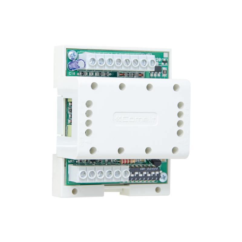 Module voor de het inkoppelen van het videosignaal afkomstig van 3 kleurencamera?s waarvan de beelden beurtelings zichtbaar zijn, samen met het beeld afkomstig van het entreepaneel. De cyclische selectie van de beelden van de camera?s is mogelijk met de relaisdrukknop van de monitor Diva, Bravo of Genius. Mogelijkheid om camera?s van derden aan te sturen. Voeding 12 V AC of 20 V DC. Afmetingen: 60x85x35 mm (4 DIN modulen).