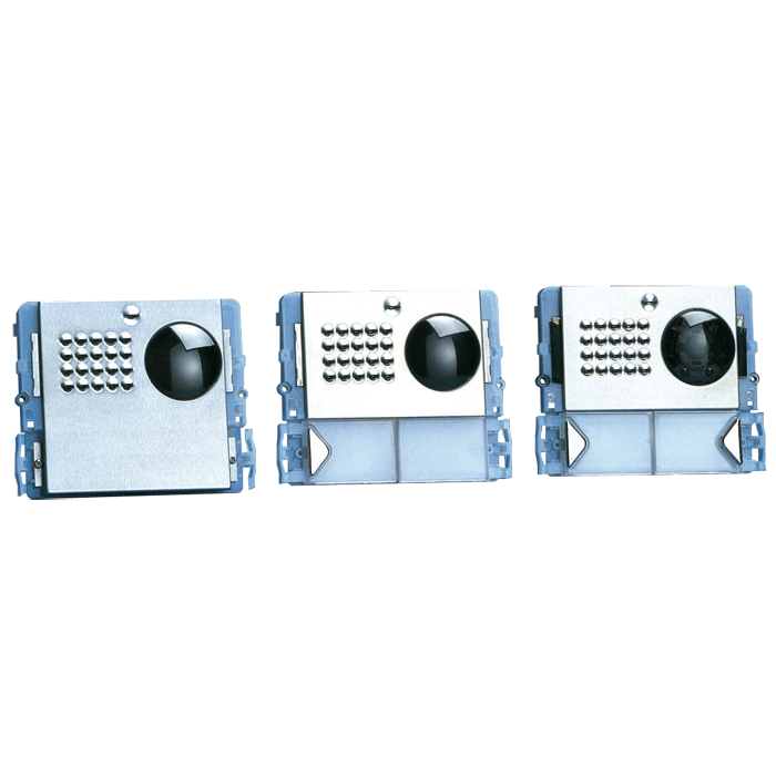 Module voor audio/video units, met roestvrij stalen frontpaneel en blauwe leds voor de verlichting van de naamkaarthouders. Te completeren met de bijbehorende audio/video unit die afhankelijk is van het gebruikte bekabelingssysteem. Aantal modulen 1, Afmetingen 112X89.5X32 mm