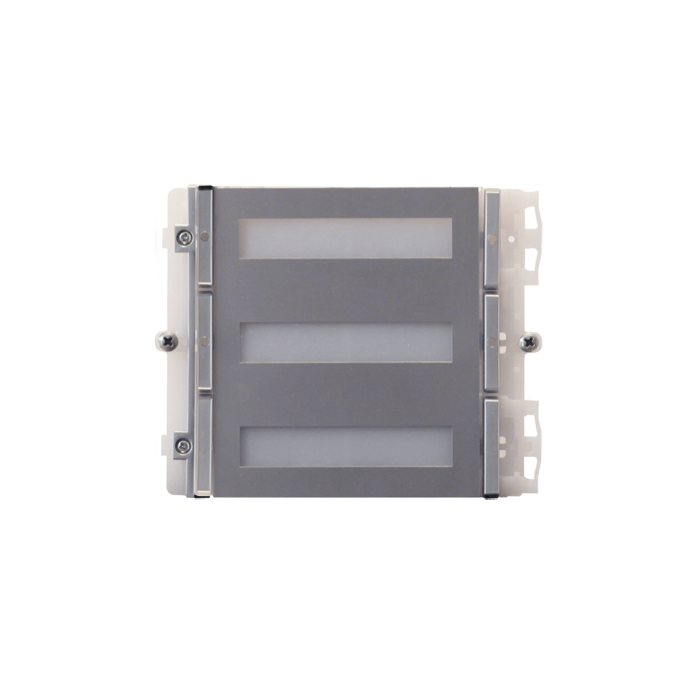 Module 4 beldrukkers deurstation iKall Metal voor Simplebus/ViP-systeem, met roestvast stalen afwerking. Verlichting naamkaders instelbaar op blauw, wit of uit. Afmetingen 112x89,5x40 mm.