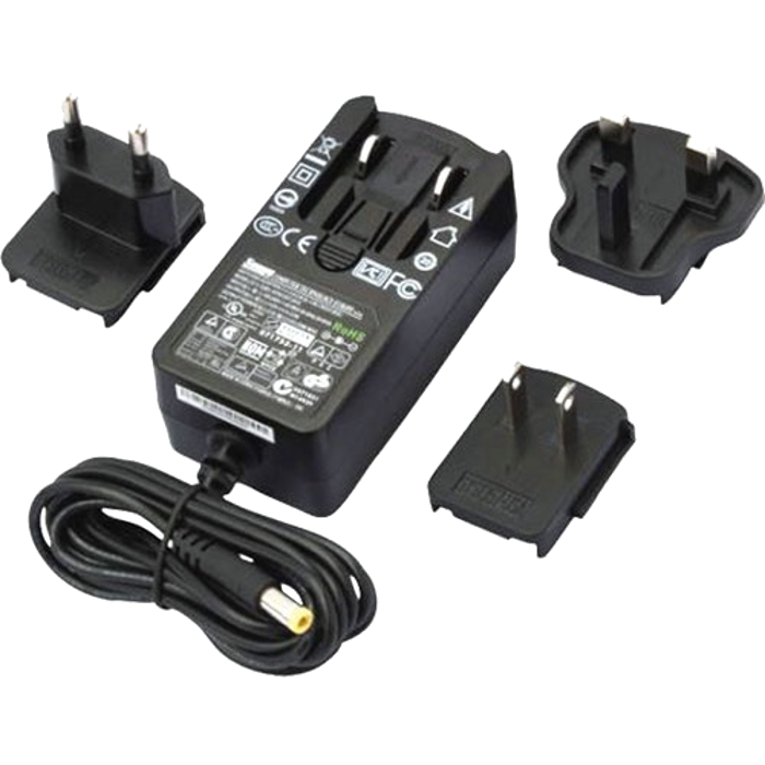 Voedingseenheid voor smart deurbel Visto, ingangsspanning 110÷240 VAC, uitgangsspanning 24 VDC. Verwisselbare pluggen voor de Europese, Engelse en Amerikaanse markt geleverd.