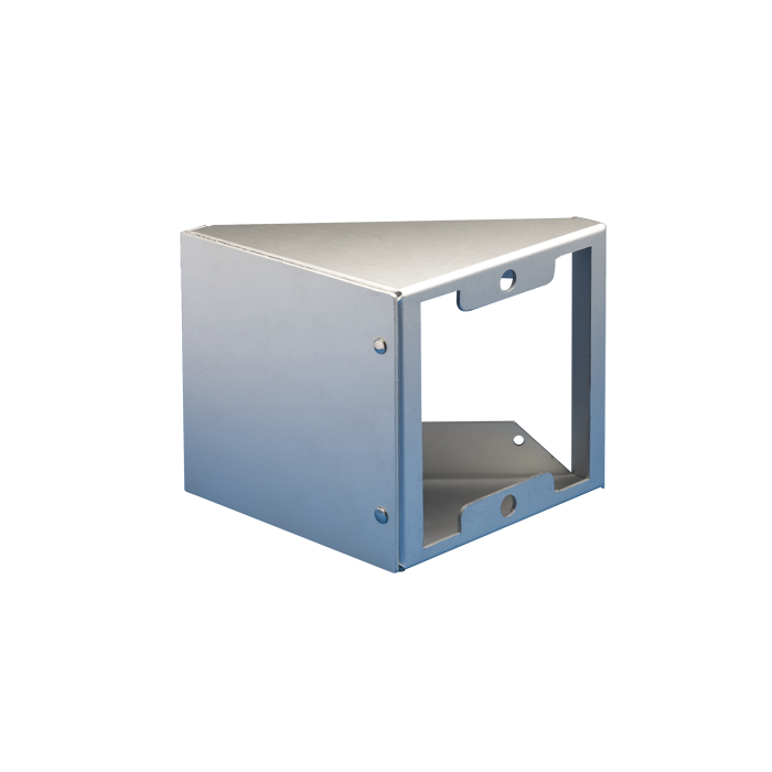 Behuizing van aluminium om het Ultra, Powercom, Ikall en Ikall Metal deurstation in een hoek van 45° te kunnen monteren. Wanneer de behuizing aan de wand is bevestigd, is het deurstation schuin naar de gebruiker toegekeerd, hetgeen praktischer is. Aantal modulen 3. Afmetingen: 183X354X100 mm
