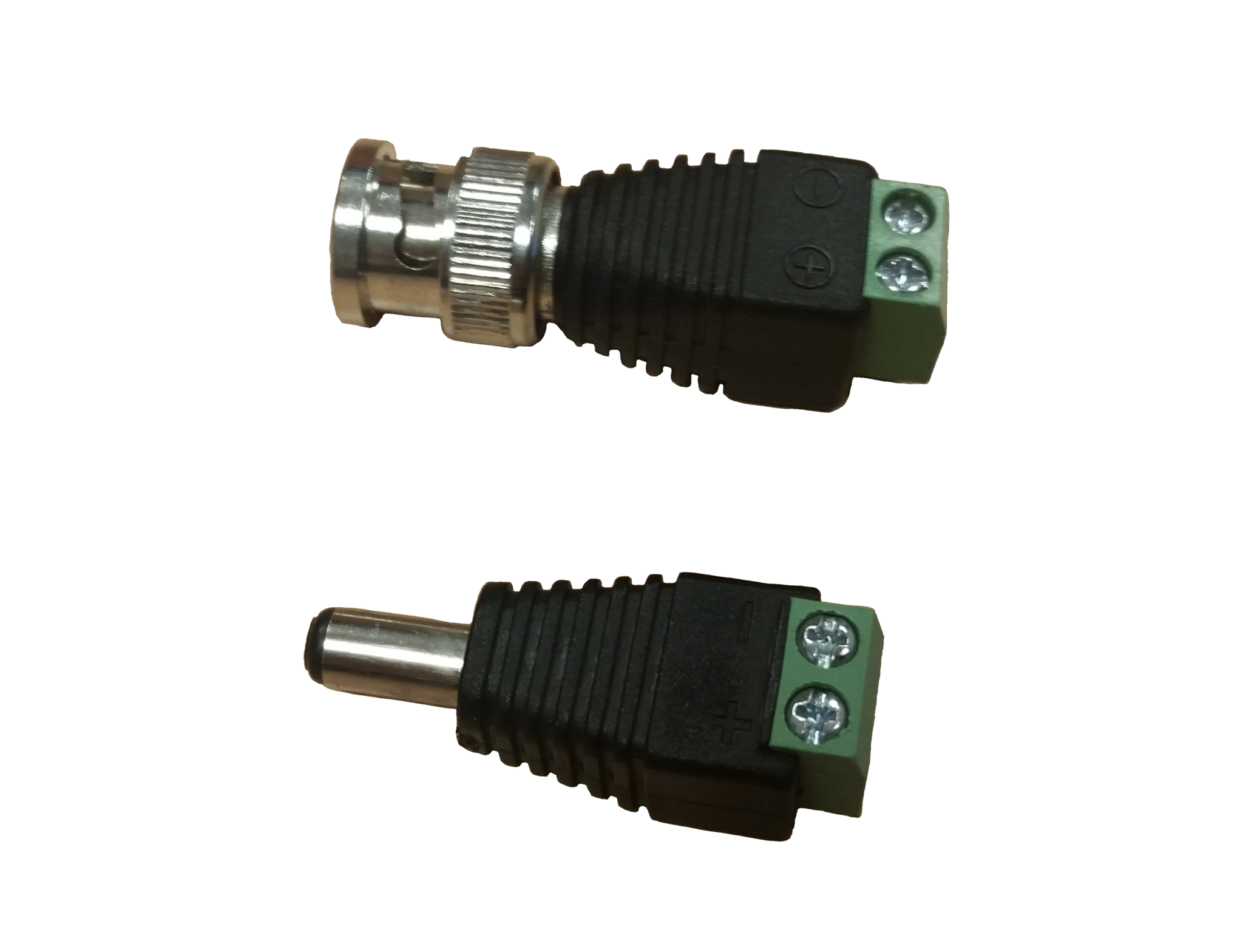 Aansluitset voor het aansluiten van externe camera's op de voeding en op de coaxkabel, zoder dat hier speciaal gereedschap voor nodig is.