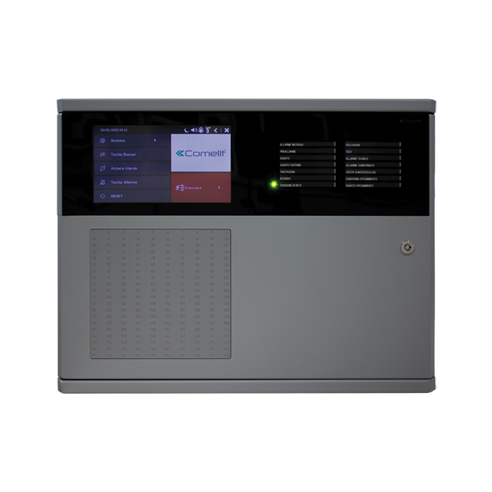 De geadresseerde brandmeldcentrale 41CPE118 serie LOGIFIRE, wordt standaard geleverd met 1 lus, uit te breiden naar 4 door het gebruik van 3 kaarten 41ECL220, en tot maximaal 8 lussen door de toevoeging van de metalen kast (standaard 4 maal 1 lus) Art. 41CPE104. Aan elke lus kunnen maximaal 250 geadresseerde toestellen (melders, handbrandmelders, I/O-modules, sirenes, enz.) worden gekoppeld, die kunnen worden onderverdeeld in 200 zones in totaal. De centrale is voorzien van dubbele microprocessor en 14A voedingseenheid met 12V uitgang voor accu en beschikt op het frontpaneel over 200 leds voor indicatie van de zonestatus. Algemene signaleringen voor brandalarm, vooralarm, storing, CPU-storing, vertraagd alarm, uitsluitingen, test, aanwezigheid netwerk. Mogelijkheid tot integratie in bewakingssystemen met protocol Modbus TCP/IP en compatibiliteit met LOGIFIRE Redundancy Network via art. 41ECB000. De centrale wordt gekenmerkt door een grijze, robuuste metalen behuizing (430x330x150mm) met dezelfde afmetingen als alle LOGIFIRE centrales en behuizingen van Comelit, om te zorgen voor een optimale modulariteit en compatibiliteit tijdens de montage. Op het frontpaneel bevinden zich alle signaleringen en commando?s overeenkomstig de vereisten van de norm EN54-2 via led-lichtsignaleringen en een 7? lcd-kleurendisplay met sensitief touchscreen. Gecertificeerd volgens EN 54-2 EN 54-4, EN54-13.