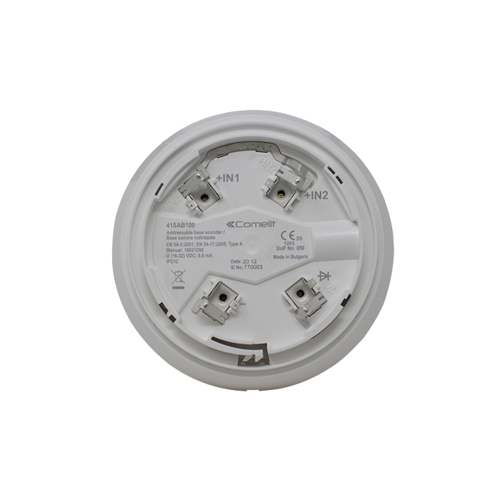 De LOGIFIRE geadresseerde audiosokkel 41SAB100 is een sokkel met ingebouwde sirene. Hierop kan direct een melder worden gemonteerd, waardoor er minder ruimte nodig is voor de installatie. Wordt direct gevoed door de centrale en gecontroleerd door het communicatieprotocol, bevat 32 verschillende tonen en 2 geluidsniveaus die vanuit de centrale geprogrammeerd kunnen worden. Audiosokkel met herzien ontwerp, geschikt voor elk type installatie, zelfs die met de strengste esthetische eisen. Family feeling met alle sensoren van de nieuwe Comelit-serie LOGIFIRE. Ingebouwde isolator. Gecertificeerd volgens EN54-3 en EN54-17.