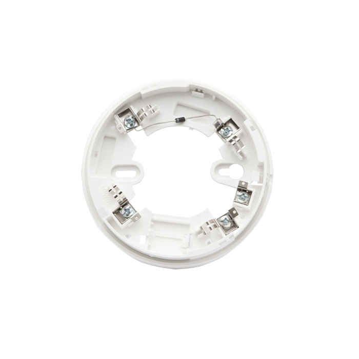 De standaard sokkel met diode voor conventionele melders heeft een laag profielontwerp en een zeer betrouwbaar detector-aansluitsysteem waarmee ook een stevige bevestiging van de melder wordt gegarandeerd. Dankzij de aanwezigheid van de diode is detectie mogelijk als de melder uit zijn sokkel wordt verwijderd. Afmetingen: ø 102 mm, h 11 mm. Gewicht: 42 g.