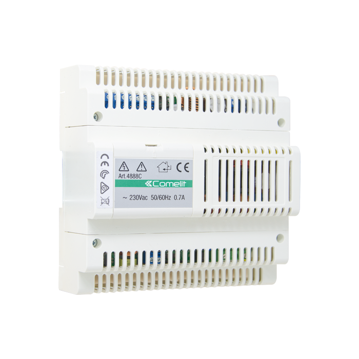 Deze voedingsmixer in een 8 DIN behuizing wordt gevoed met 230VAC. De ingang wordt aangesloten op een Simplebus1 signaal, waarna deze mixer de voedingsspanning van de monitor superponeert op het signaal (beeld en geluid) van de stamleiding er kunnen maximaal honderd toestellen (per voedingsmixer) worden aangesloten, deurintercomtoestellen of monitoren, verdeeld over 4 uitgangen. Voorzien van led voor signalering van een eventuele kortsluiting in de stamlijn. Voorzien van 4 lijnafsluitblokjes art.1216. Afmetingen: 140x140x67 mm (8 DIN modulen). Vanaf versie IR013 is deze compatibel met alle Simplebus 2 producten.