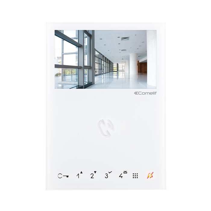 Handsfree kleurenmonitor en inductiespoel voor ViP-systeem. Kleurenscherm van 4.3" 16:9. Resolutie 480x272 pixel. Instelling van de achtergrondverlichting, audiovolume en het volume van de oproeptoon mogelijk. Standaard voorzien van 7 soft-touch drukknoppen: drukknop voor deurslotbediening met signaleringsled 'deur open', toets voor privacy-functie met signaleringsled, 4 programmeerbare drukknoppen en 1 drukknop voor toegang tot het menu. Beschikt over 3 programmeerbare ingangen voor diverse functies. Ook bruikbaar voor standaard PoE-systemen. Het is mogelijk de oproeptoon en het videogeheugen te personaliseren. Videoformaat H264. Afmetingen 115x160x22 mm