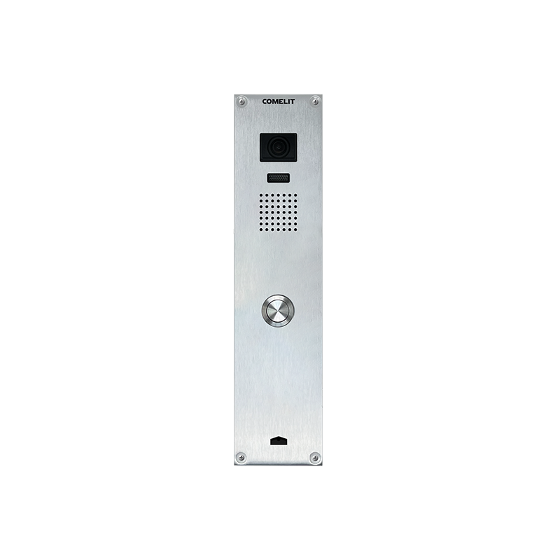 Monobloc inbouw audio/video-deurstation met 1 drukknop Adam. Digitaal 2-draads systeem Simplebus 2. Het frontpaneel is uitgevoerd in geanodiseerd aluminium, bestand tegen weersinvloeden en vandalismebestendig (beschermingsgraad IK08) Groothoekcamera. De drukknop is al voorgeprogrammeerd om de video-deurintercom op te roepen met oproepcode 1. De totale breedte bedraagt slechts 60 mm, een zeer beperkte afmeting waardoor het deurstation naast de traditionele wandmontage ook direct op de deurstijl kan worden geïnstalleerd. Ook ideaal voor renovaties. Het is mogelijk naamkaders, art. AD9201, toe te voegen en door de gebruiker aan te passen informatieplaatjes, art. AD9202. Afmetingen (B x H x D): 60 x 250 x 37mm.