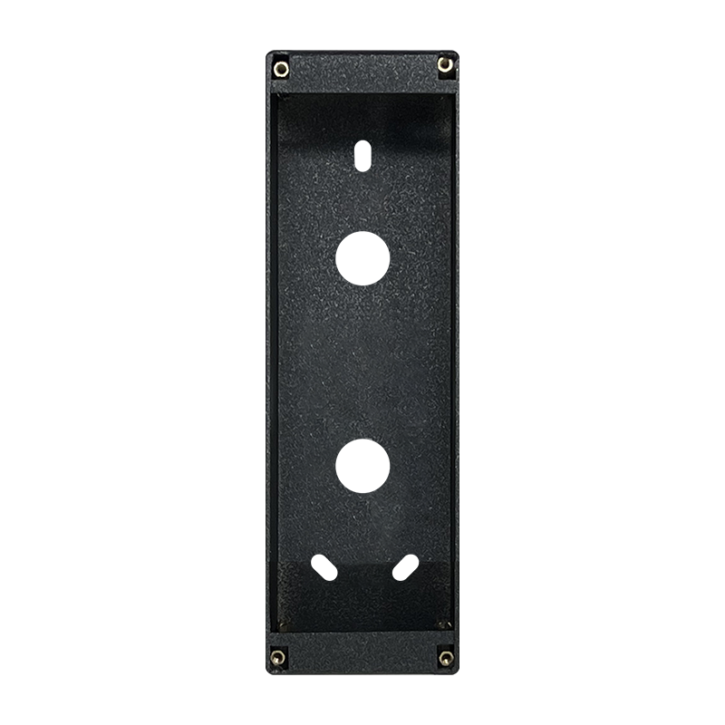 Opbouwbehuizing voor deurstation Adam met 1 en 2 drukknoppen. Uitgevoerd in metallic gelakt aluminium. Steekt slechts 44 mm uit de wand. Afmetingen (B x H x D): 59 x 249 x 44mm.