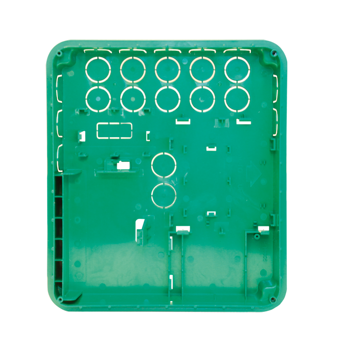 Inbouwbehuizing van vlamvertragend kunststof voor kaarten van VEDO centrales art.30001208, 30001234 en 30001268. Kleur deksel: wit RAL 9003. Biedt plaats aan een batterij van 7 Ah, een voedingseenheid art. 30076101 en max. 2 uitbreidingskaarten op bus. Afmetingen (B x H x D) 310x 350 x 75 mm.