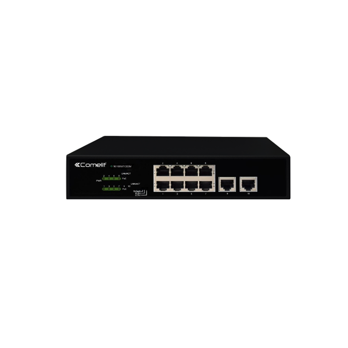 Netwerkswitch met 8 PoE-poorten + 2 gigabit uplinks. Opmerking: compatibel met het ViP- systeem vanaf ECN 002.
