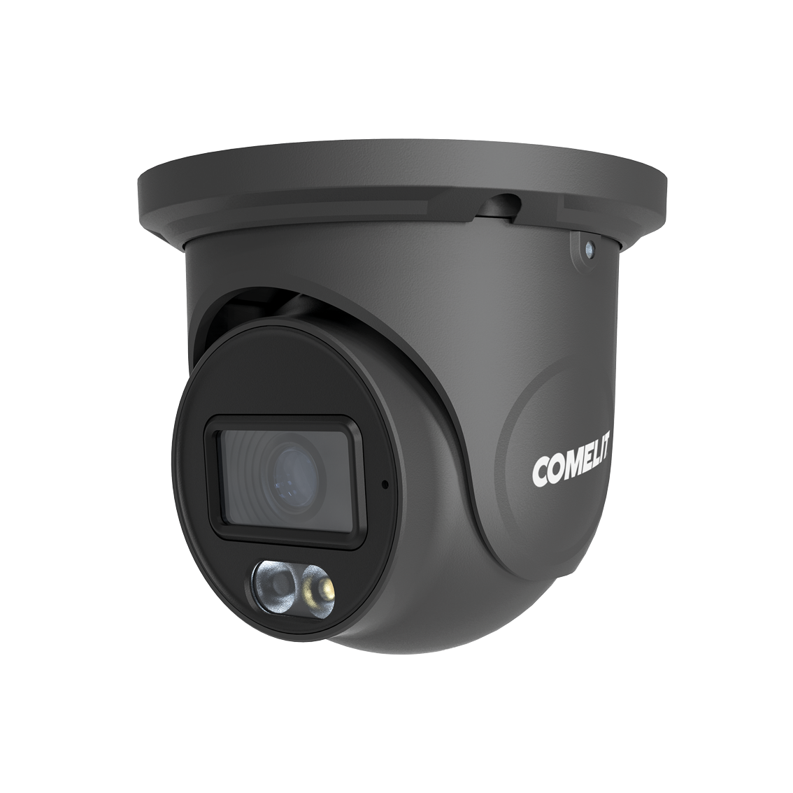 ColorUp turret IP-camera serie Next, vaste lens van 2,8 mm, resolutie 4MP@30 fps, Witte LED met bereik van 20 meter, IR-led met bereik van 20 meter (Smart IR), ColorUp-functie (Witte LED), Dual Light (IR+Witte LED met onderscheid personen/voertuigen) en IR-led. Compatibel met ONVIF. Video-analysefuncties: Inbraak in gebied (onderscheiding personen/voertuigen), lijnoverschrijding (onderscheiding personen/voertuigen), functie voorwerp achtergelaten / verwijderd. WDR 120Db, videocompressie H.265+ / H.265 / H.264+ / H.264/ MJPEG, slot SD (max. 256GB). Audio: 1 in, ingebouwde microfoon. Behuizing van gegoten aluminium, waterproof IP67, voeding 12VDC/ PoE IEEE802.3af. Compatibel met de browsers: Google Chrome/Edge/Firefox/Safari. Kleur verkeersgrijs B, RAL 7043. Compatibele accessoires: JBA-TBBAB, CMA-KTBBAB, WMA-KTBBAB, PMA-AB, AMA-AB, WMA-01AB.