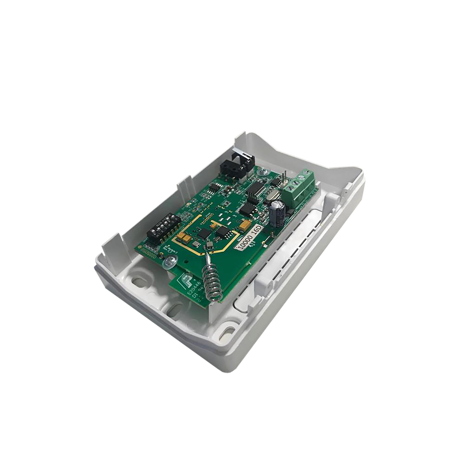 Draadloze zender/ontvangermodules waarmee de draadloze apparaten kunnen worden gebruikt die zijn vermeld in de VEDO-centrales van Comelit. Voor het gebruik van maximaal 10 detectoren, 8 sirenes en 16 afstandsbedieningen. Zit in een witte, vlamvertragende kunststof behuizing, inclusief uitsluitbare sabotagebeveiligingen tegen opening en losrukken. Het is ook mogelijk de module in de behuizingen art. BOXSTANDARD, BOXPLASTIC, BOXMETAL en BOXFLUSH te plaatsen. Afmetingen (L x H x D) 126 x 80 x 32 mm.