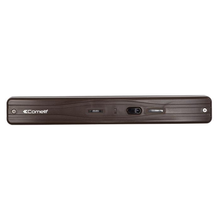 Draadloze sensoren met gordijneffect die geschikt zijn voor de beveiliging van enkele kozijnen en doorgangen, dubbele infraroodtechnologie, maximum bereik 4 m. Kleur bruin