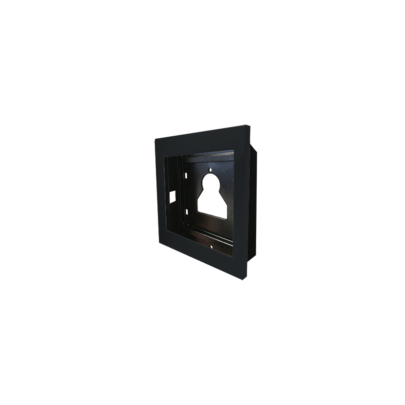 Inbouwframe 1 module voor deurstation Ultra, zwart RAL9005. Bestaat uit een metalen wandsteun waarmee de modules zonder schroeven stevig kunnen worden bevestigd en uit een afdekframe uitgevoerd in gegoten aluminium voorzien van KTL-coating om de weerstand tegen chemische en omgevingscorrosie te verhogen, inclusief UV-straling. Steekt 10 mm uit de wand. Te gebruiken op inbouwdozen art. 3110/1 en 3110/1A met de mogelijkheid om meerdere modules horizontaal naast elkaar te plaatsen. Afmetingen (B x H x D): 125,5 x 136 x 35mm.