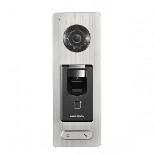 De Hikvision DS-K1T501SF is een all-in-one intercom en toegangscontrolemodule die een camera, MiFare kaartlezer, en vingerafdrukscanner combineert. Deze veelzijdige oplossing biedt meerdere toegangsopties, waaronder vingerafdrukken, gezichtenherkenning, smartcardlezing, en zelfs QR-code toegang, wat het ideaal maakt voor zowel residentiële als zakelijke toepassingen.