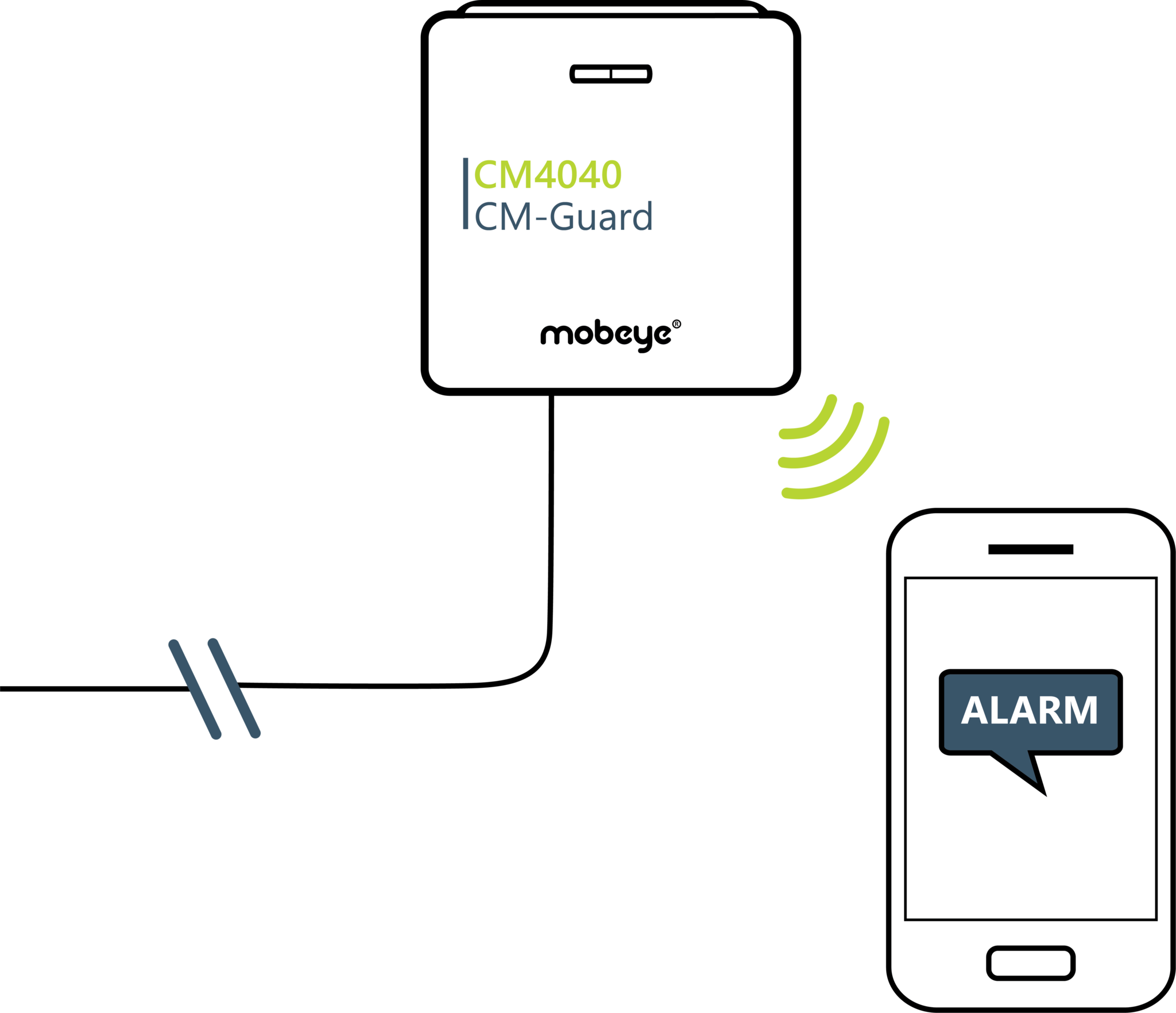 De Mobeye CM4040 werkt ruim een jaar op een set batterijen. Bij lage batterijspanning volgt een melding. Bij gebruik van een externe stroombron (12-24V DC of netspanning), stuurt hij ook stroomuitval- en herstelmeldingen.